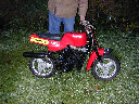 This is a custom made kiddies bike that has been built from a motor scooter. It was built about 15 years ago and used by my son until he moved on to bigger things. It is suitable for any age, in fact, I used to ride on it myself and I'm 12 stone.
